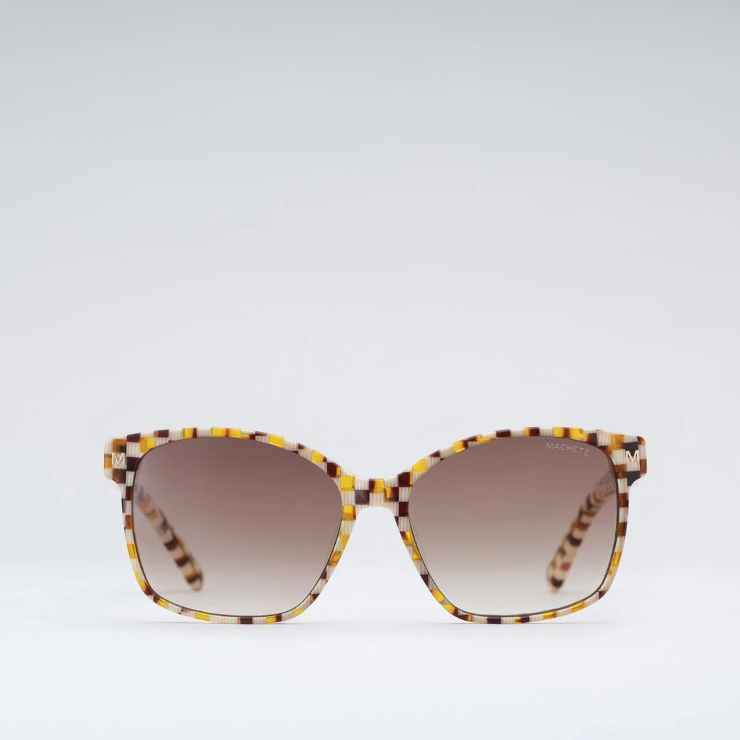 Handcrafted from the most environmentally friendly and highest-quality acetate on the market today, Jenny is a truly classic frame with a slightly oversized shape reminiscent of ‘70s style. Adorned with a gold Machete logo and hardware as well as a ring for your eyeglass chain at the temples.