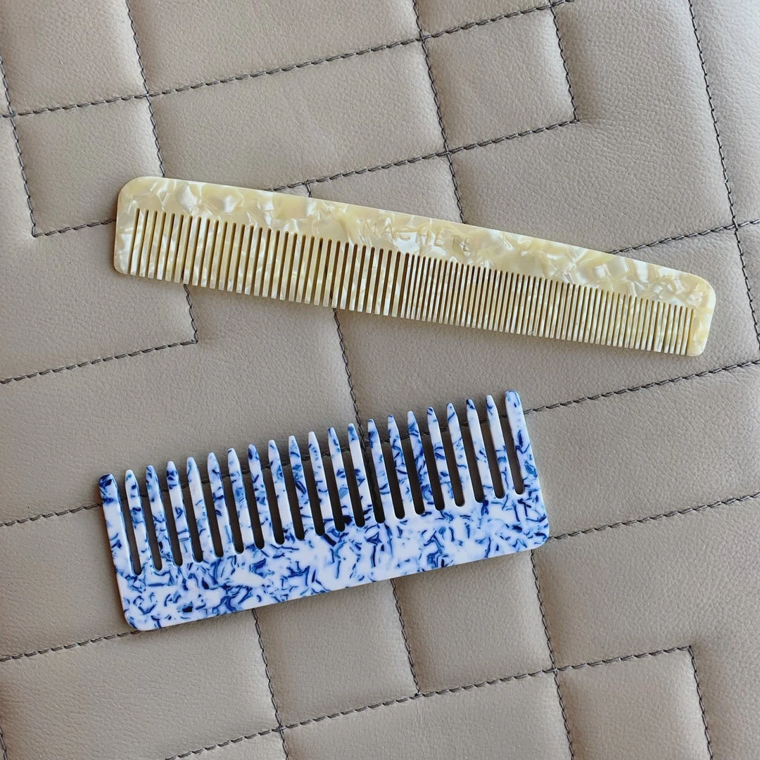 Our wide tooth No. 2 Comb is so functional and stylish you will never want to put it away. But just in case you have to, it comes with a pouch for easy storage. Suitable for all hair types including wavy and curly hair.Â