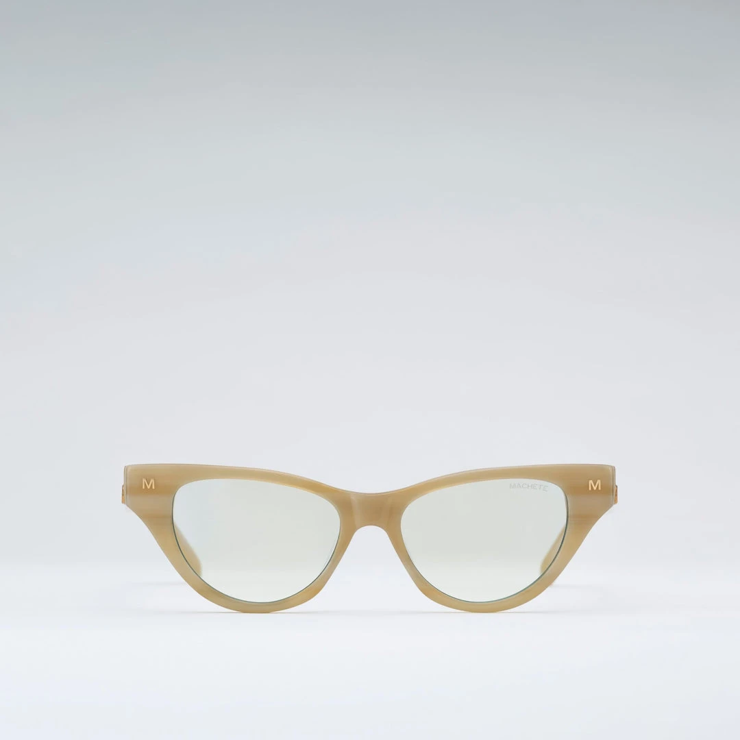 Take any ensemble to the next level with Suzy, our ultra-sleek narrow cat-eye frame. Handcrafted from the most environmentally friendly and highest-quality acetate on the market today to ensure your frames will not only last but be kind to the planet as well. Adorned with a gold Machete logo and hardware as well as a ring for your eyeglass chain at the temples.