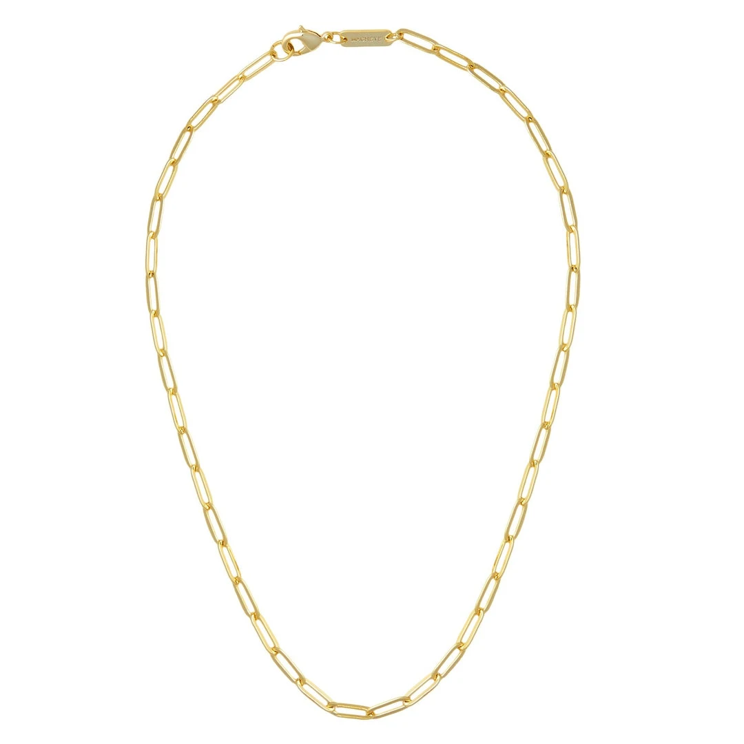 Delicate paperclip chain necklace with a slim, modern chainlink design. Additional image shows all of our chain-link styles side by side.Â