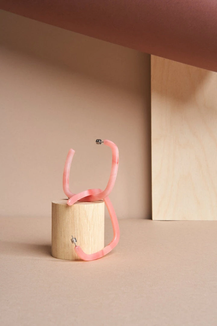 The model wears our Large Square Hoops in Classic Tortoise.Â