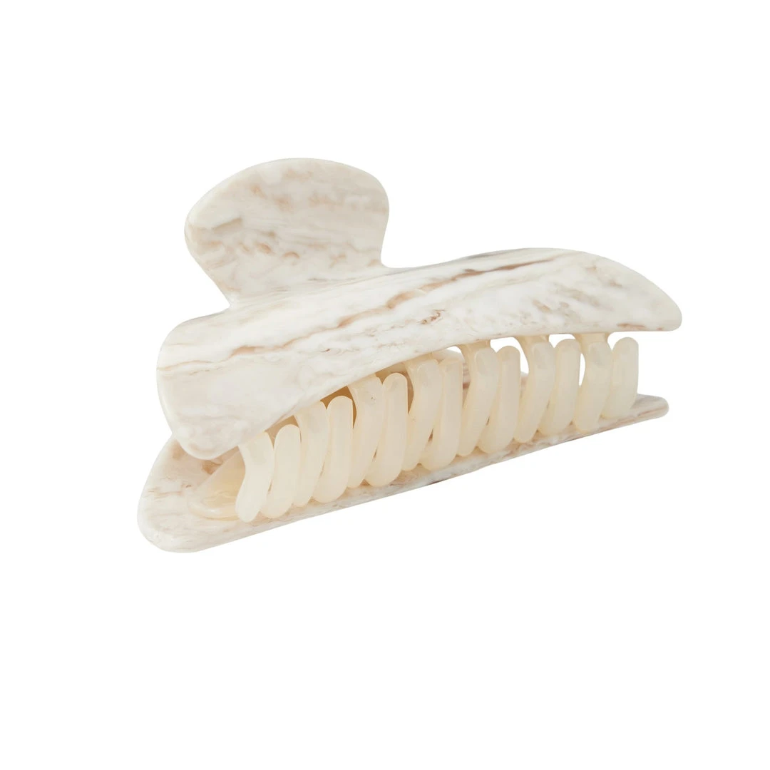 The model wears our Midi Heirloom Claw in Stromanthe.