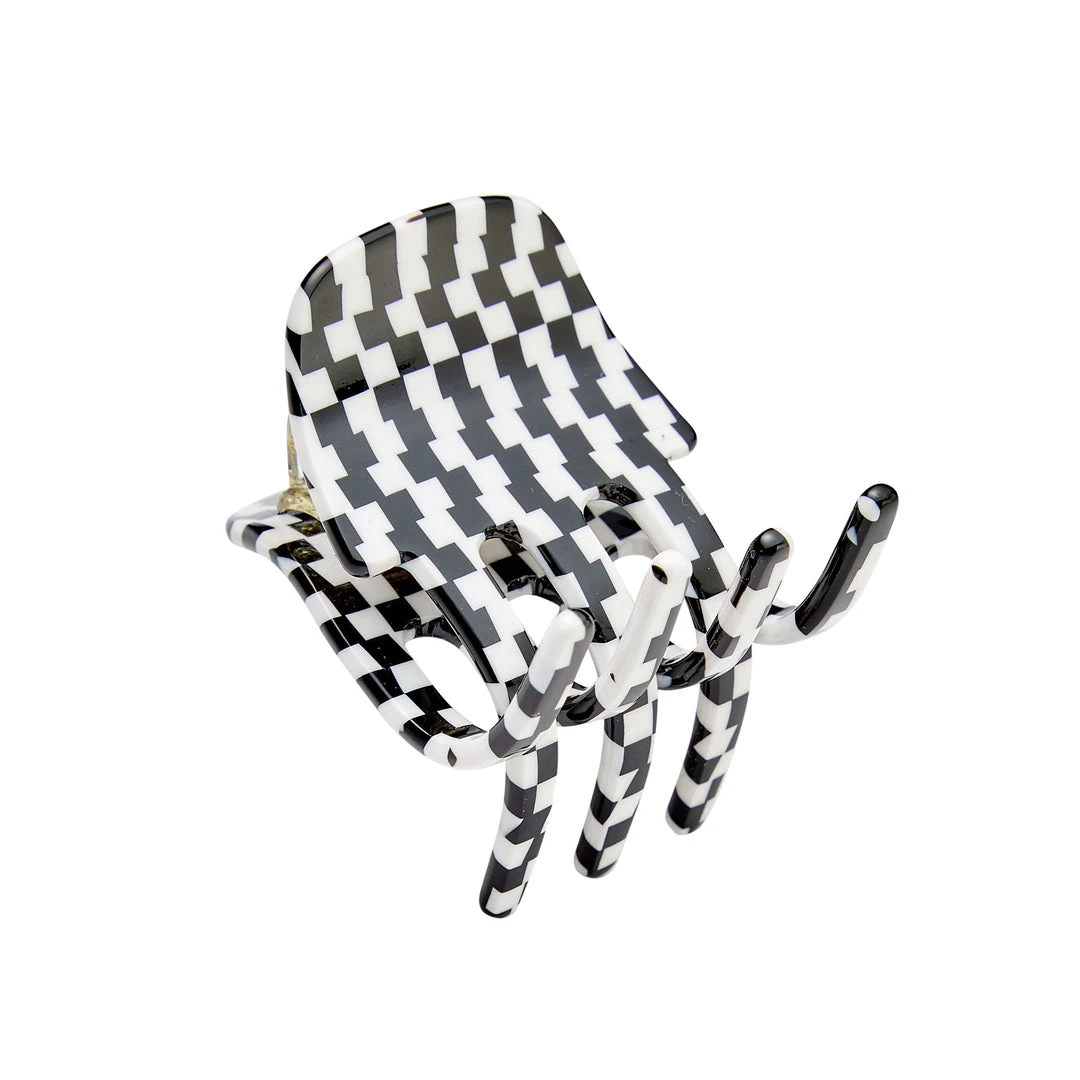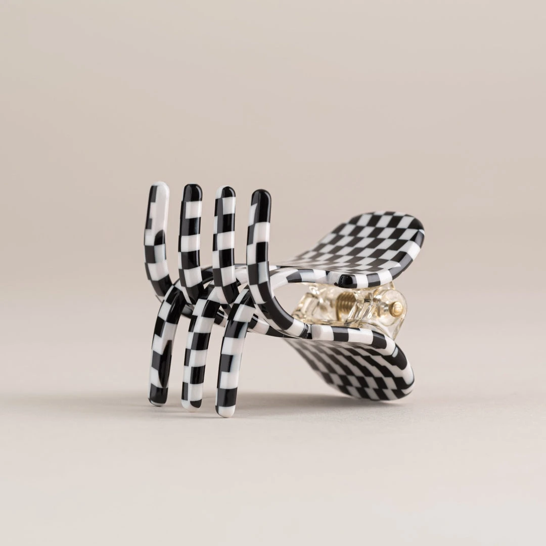 The model wears 2 of our Mini Claws in Canyon Brown.