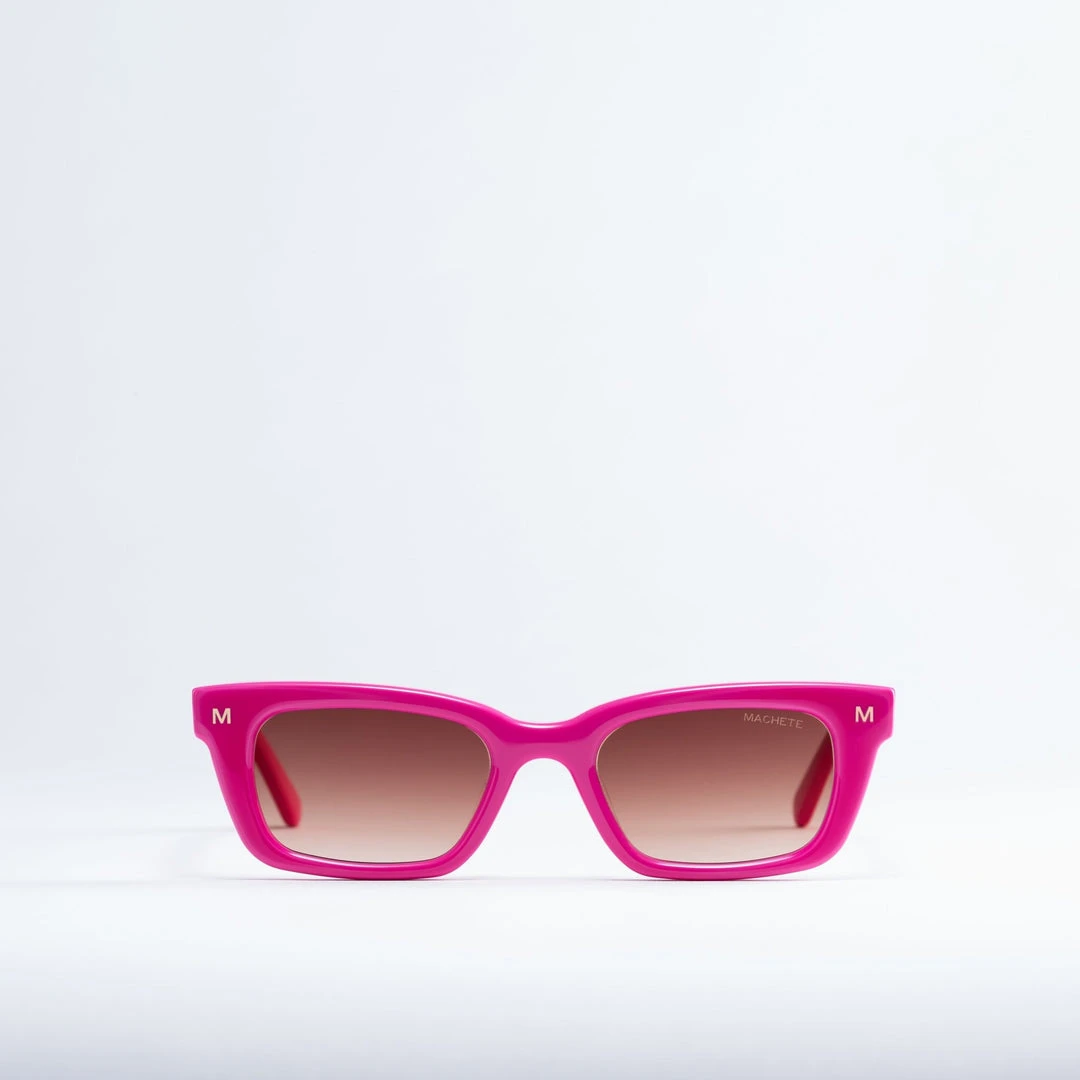 This ‘90s inspired rectangular frame in Machete’s signature show-stopping acetate brings the chic style of this iconic decade to the modern era. Handcrafted from the most environmentally friendly and highest-quality acetate on the market today to ensure your frames will not only last but be kind to the planet as well. A gold Machete logo, hardware as well as a ring for your eyeglass chain at the temples.