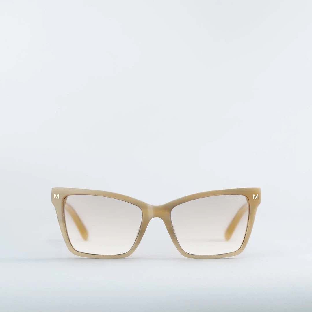 With a subtle cat-eye shape and sharp-edged frame, Sally hits the mark at all angles. Handcrafted from the most environmentally friendly and highest-quality acetate on the market today to ensure your frames will not only last but be kind to the planet as well. Adorned with a gold Machete logo and hardware as well as a ring for your eyeglass chain at the temples.