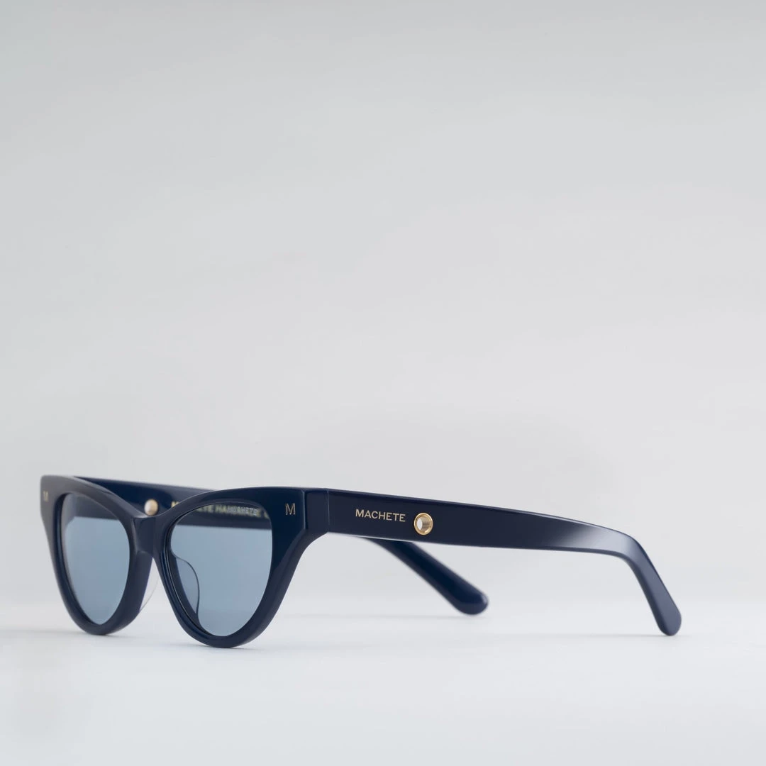 Take any ensemble to the next level with Suzy, our ultra-sleek narrow cat-eye frame. Handcrafted from the most environmentally friendly and highest-quality acetate on the market today to ensure your frames will not only last but be kind to the planet as well. Adorned with a gold Machete logo and hardware as well as a ring for your eyeglass chain at the temples.