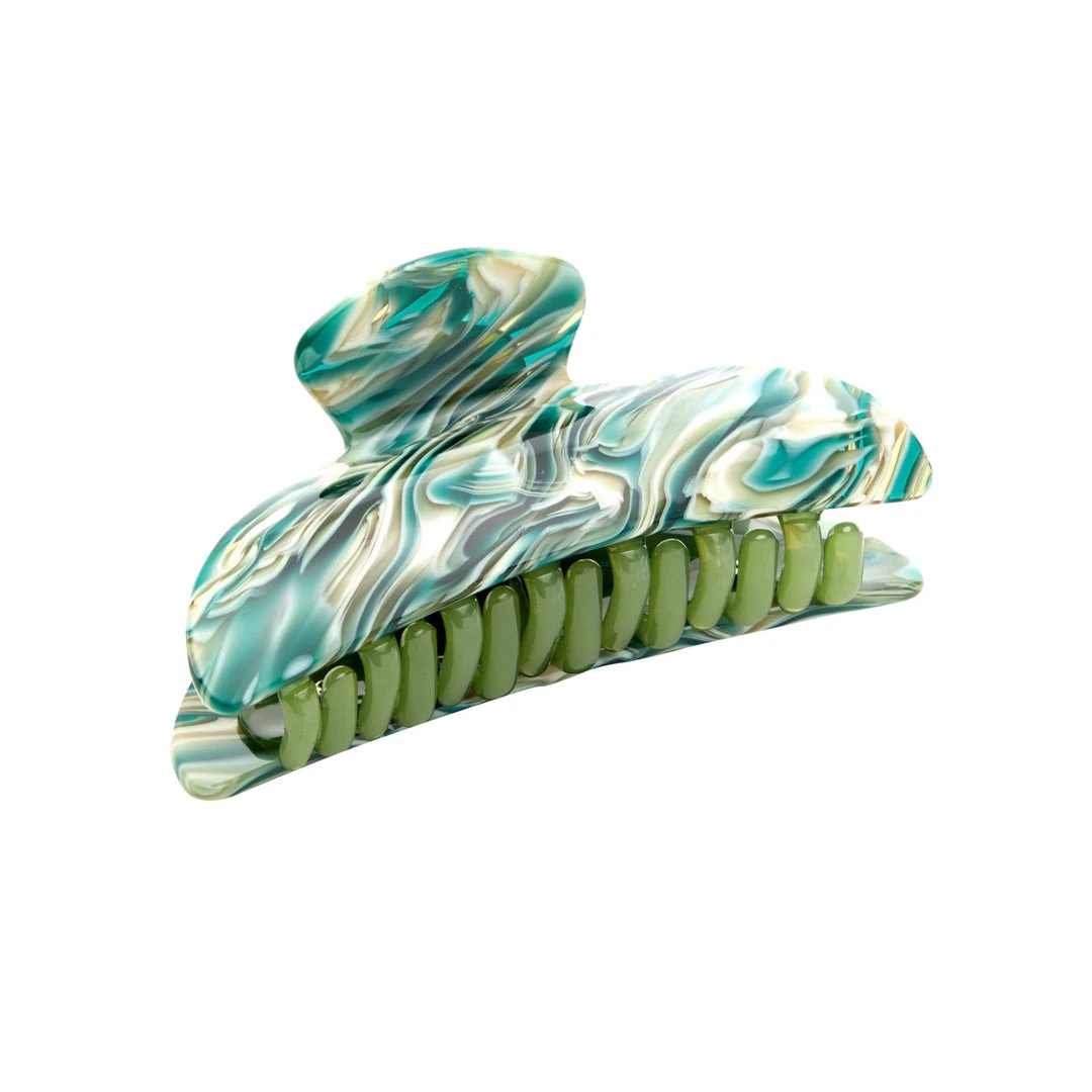 The model wears our Midi Heirloom Claw in Stromanthe.Â